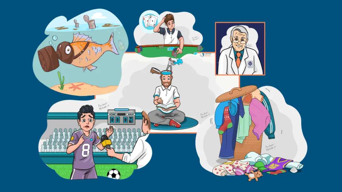 Tijdens deze training deel ik onderdelen uit mijn methode, waar inmiddels al duizenden mensen door van hun klachten af zijn gekomen. Je ontdekt aan de hand van verschillende personages zoals 'Vinnie de Vis, de pokerspeler, de arts, de fysio, de voetballer en de wasmand o.a.:
